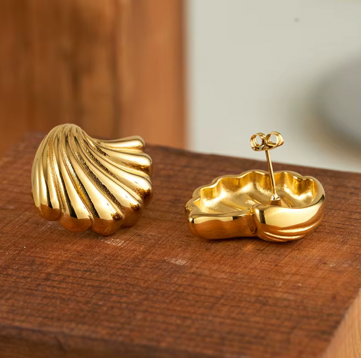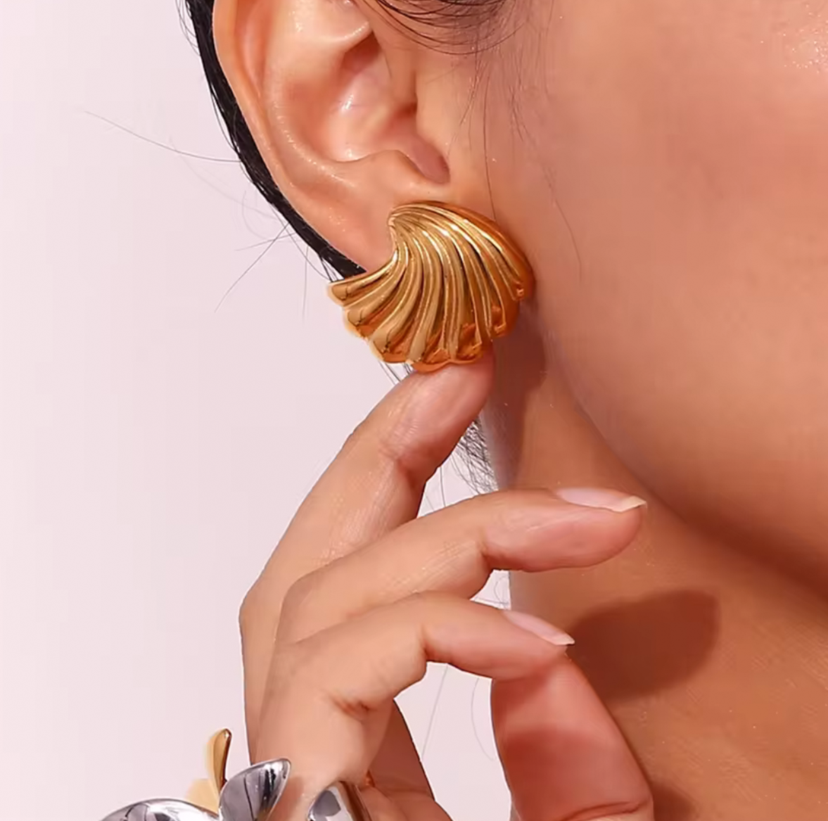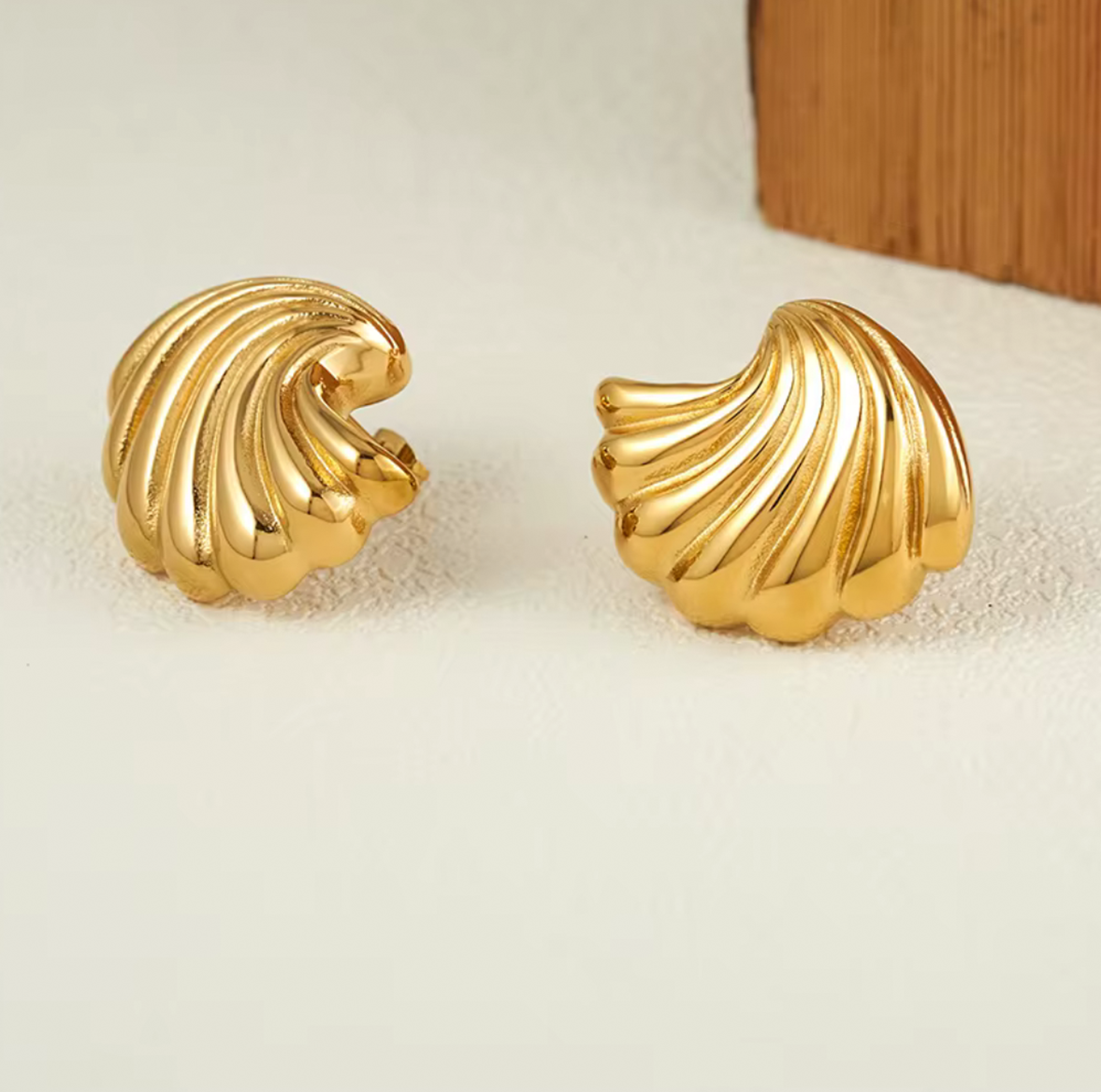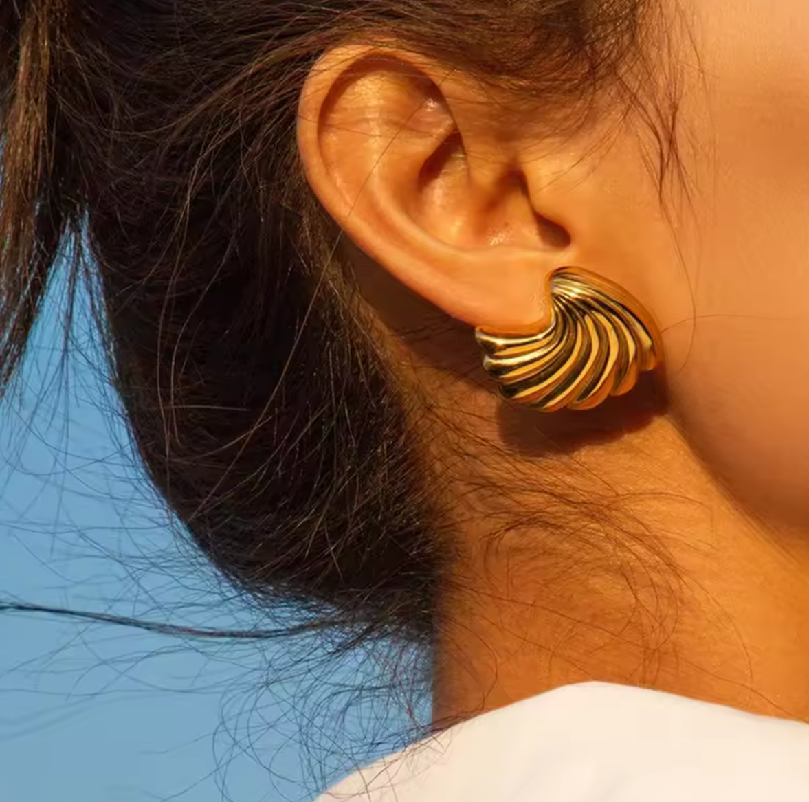 Crafted with 18k PVD gold plating on durable stainless steel. Hypoallergenic, tarnish-resistant, and water-resistant. These earrings are the perfect combination of timeless elegance and lasting quality.