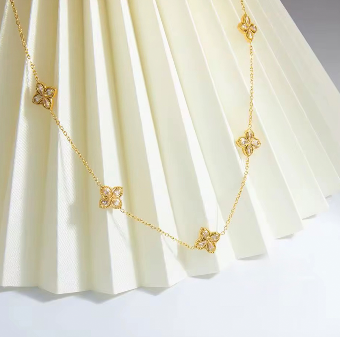 Elevate your jewelry collection with this 18K gold plated rhombus flower necklace, designed for women who love elegant, minimalist style. The dainty gold link chain features a sparkling zircon floral pendant set in a refined rhombus shape, making it perfect for layering or wearing on its own. With an adjustable 45 cm + 5 cm extender, this collar-length necklace fits comfortably and flatters any neckline.