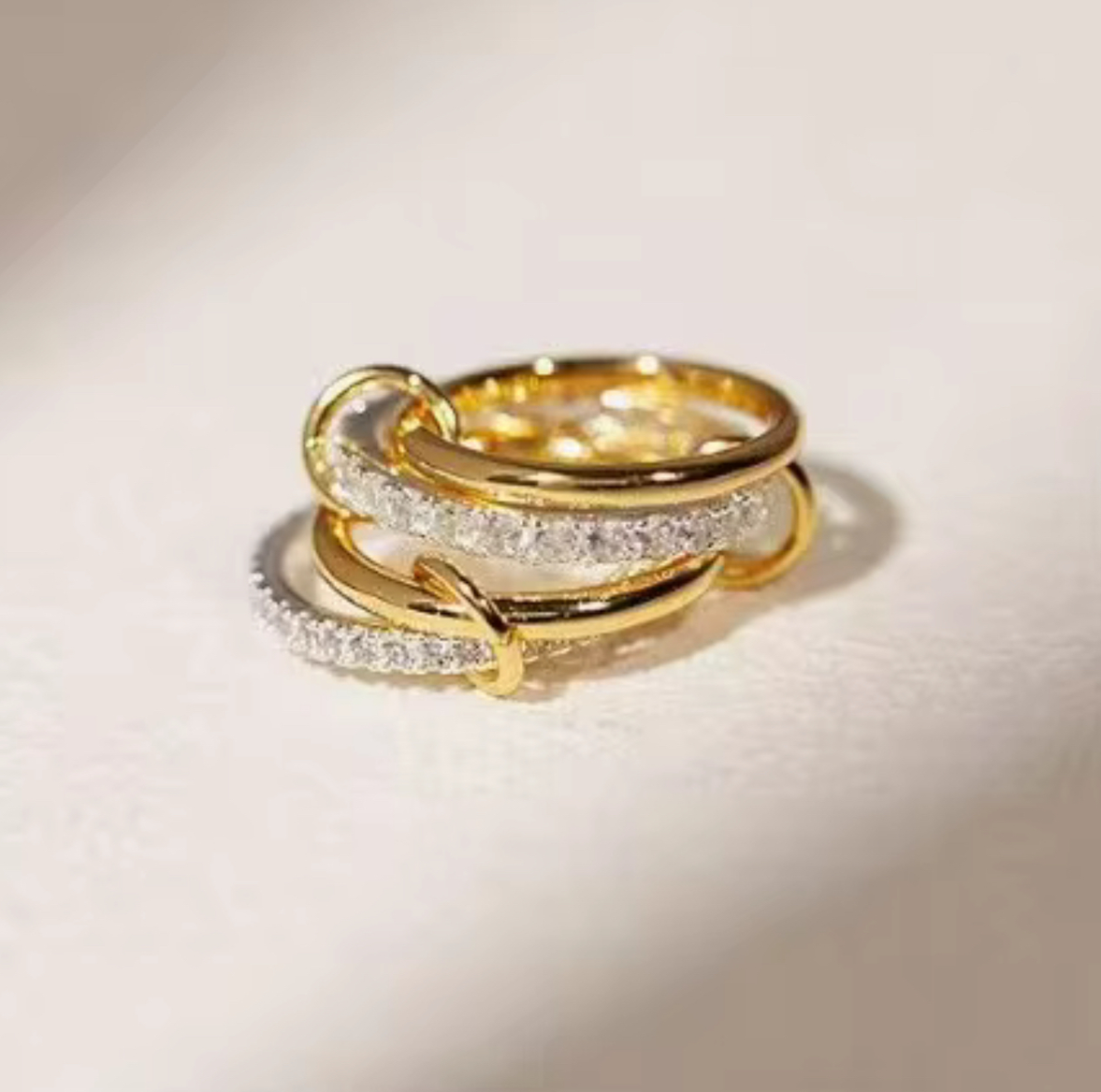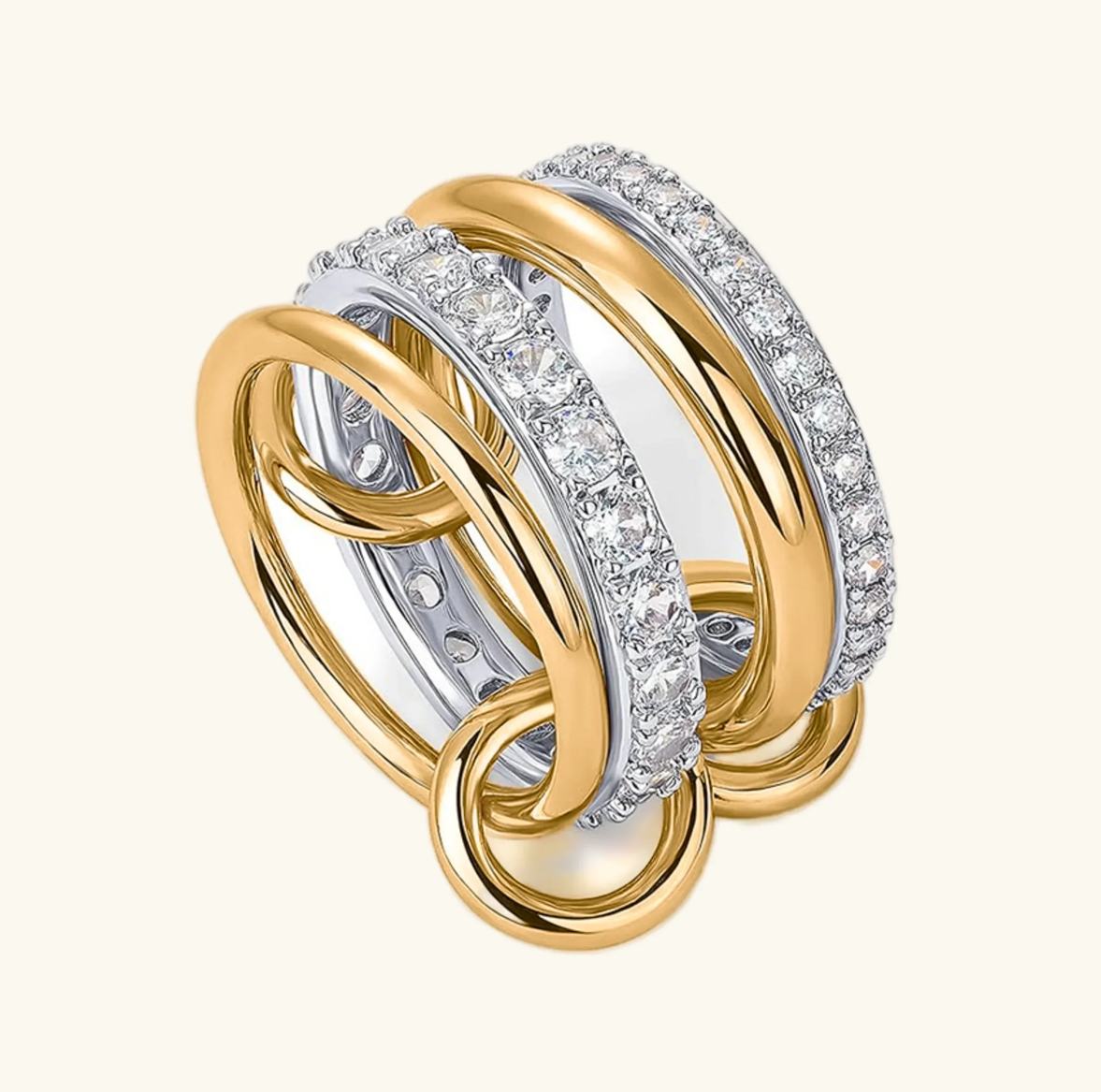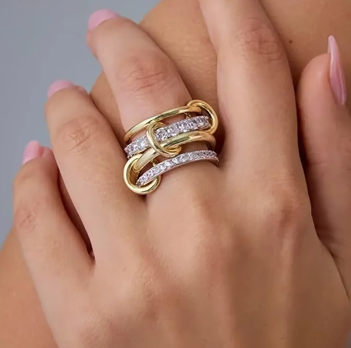 Meet Noor Ring—where gold, silver, and sparkling diamond simulants blend seamlessly for a modern, layered look. This mixed-metal statement ring is crafted from ethically sourced s925 sterling silver and 18k yellow gold, finished with high-quality AAAAA diamond simulants that deliver maximum brilliance.