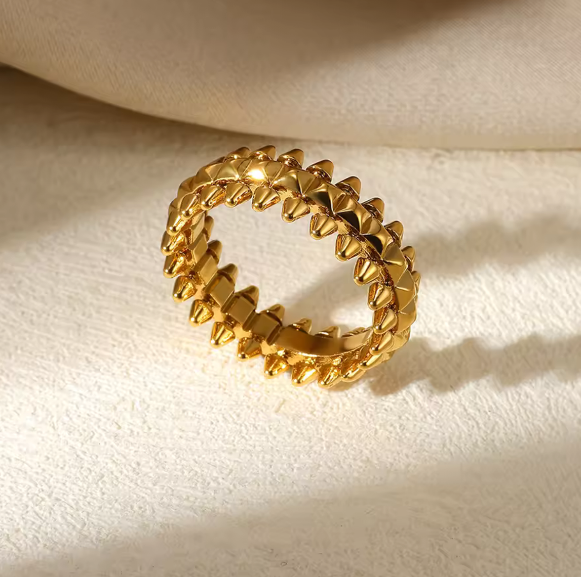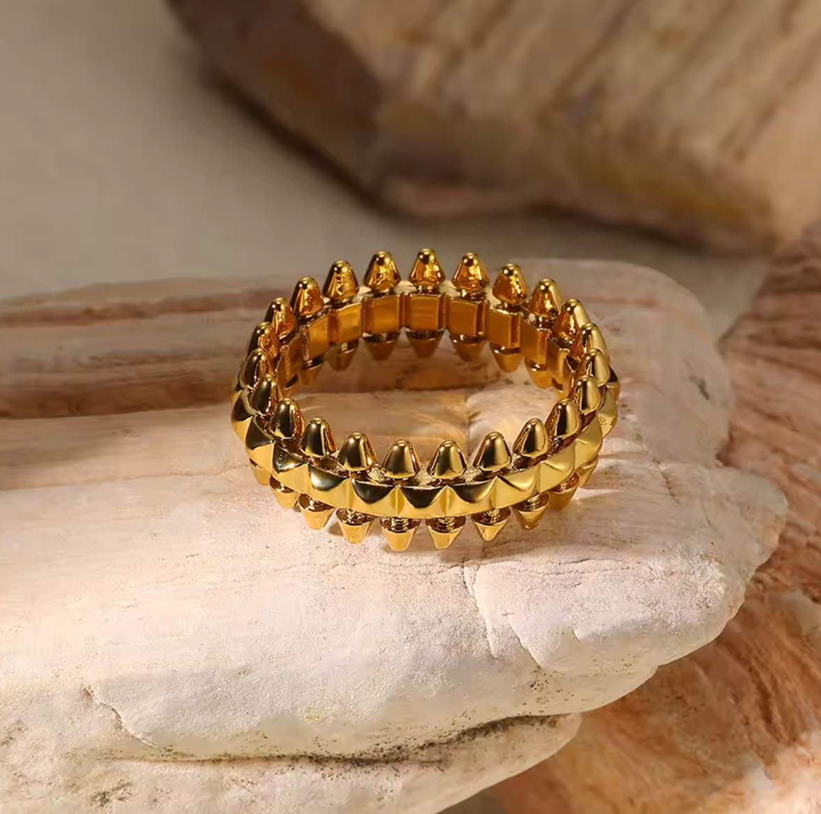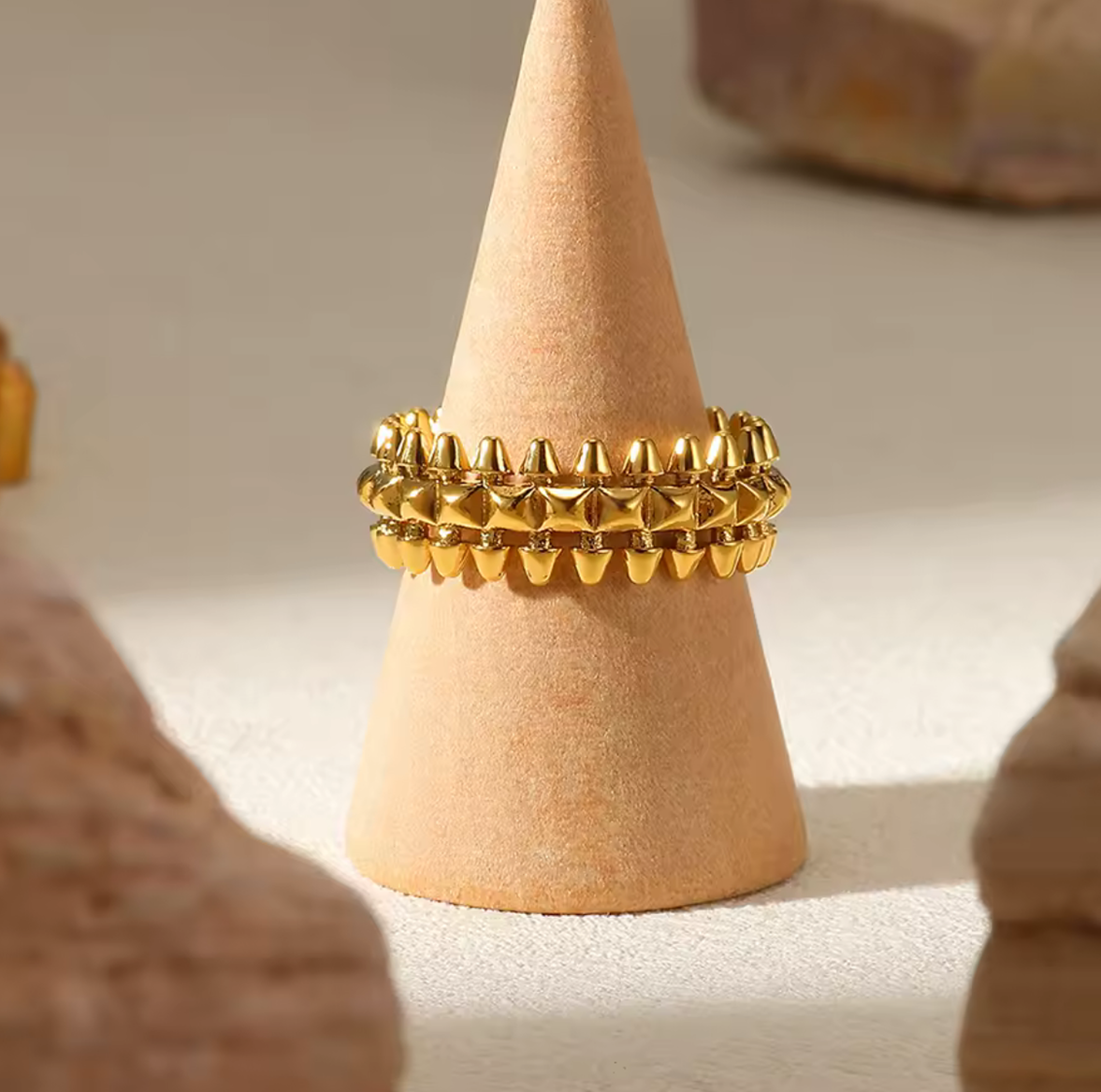 Discover effortless elegance with our round geometric ring. Crafted from stainless steel and finished in gold, the ring offer both durability and comfort. Their timeless design makes them perfect for weddings, social gatherings, professional settings, or everyday wear. A versatile accessory that blends modern aesthetics with classic appeal—an essential addition to any jewelry collection.